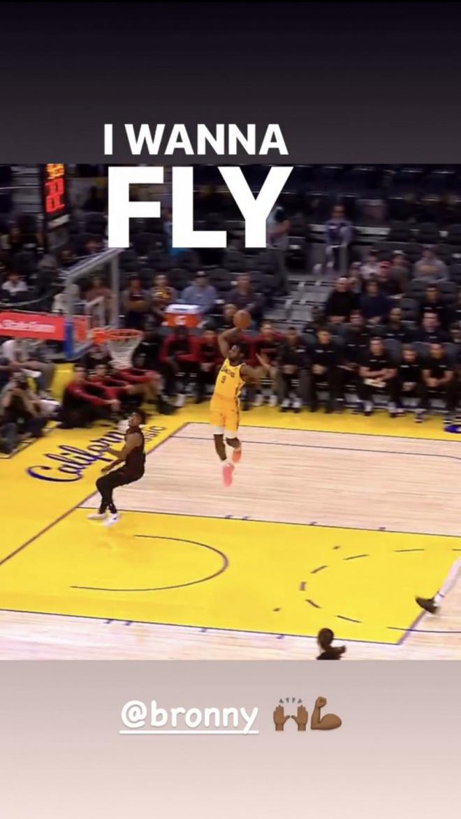 直播吧7月8日讯 今日,湖人前锋詹姆斯更新Instagram Story,转发一张他的儿子布朗尼在加州经典夏季联赛中的快攻扣篮照。吉祥坊 詹姆斯为这张布朗尼的扣篮照添加了配乐,并评论道:“@布朗尼 年轻的”吉祥体育